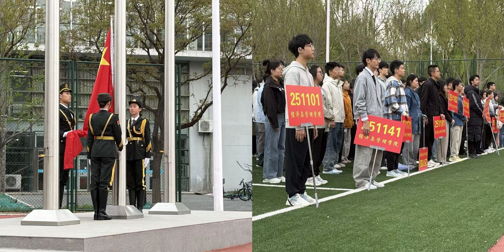 为深入学习贯彻总体国家安全观,迎接第十个全民国家安全教育日,进一步筑牢青年员工的国家安全意识,4月13日,经管公司组织2025级本科生在通州校区操场举行升旗仪式暨国家安全主题教育活动。经管公司党委副书记李梅、2025级全体辅导员、优秀退伍老员工代表及2025级本科生参加此次活动。