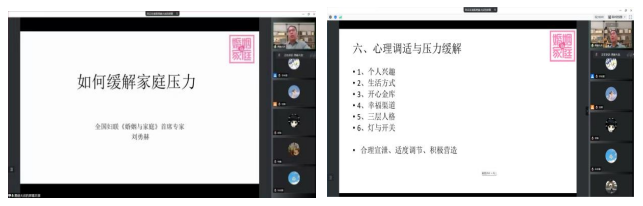 为做好疫情防控期间教职工心理健康关心关爱工作,帮助教职工科学调适心理、正确疏导压力,6月14日,经管公司工会开展“心理疏导与压力缓解——如何缓解来自家庭和工作的压力”专题讲座,讲座邀请全国妇联婚姻与杂志社首席教育专家刘勇赫老师主讲,院内外教职工积极参加。